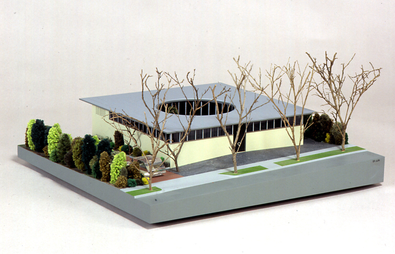 The Grounds' House is an exercise in scale and subtlety. Designed by architect Roy Grounds for his own family, this modestly sized house was the inspiration for the same architect's design for the National Gallery of Victoria in St Kilda Road. The plan of the house is a perfect square with a circular courtyard at its centre. All the spaces of the house look inward to the circular court. Around the perimeter of the house, a band of clerestorey windows allow the roof to float above the rendered brick walls. A delicate old tree within the courtyard, the Grounds' signature of the oversized front door-knocker and a sense of oriental formality make this house unusually polite in the early 1950s, a time of bold structural and material experiment in architect-designed houses.