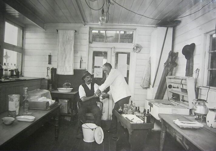 Workers in the Sunshine Harvester Works' factory were exposed to many dangers. Injuries were regular occurrences in the factory. As a result, the factory had its own First Aid Room. From the late 1930s, this department became known as the 'Ambulance Room' or 'Medical Centre'.