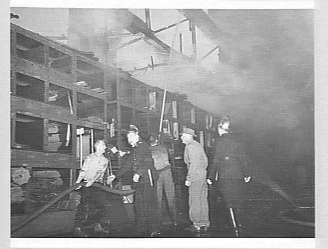 Fires were a serious threat in the Sunshine Harvester Works' factory. Established in 1910, the Sunshine Harvester Works fire brigade was made up of employees. By 1945, members were attending practice sessions and demonstrations once every four weeks. They were paid 2/- for every session they attended, plus a bonus for every fire that was extinguished. The unit also participated in local brigade competitions.