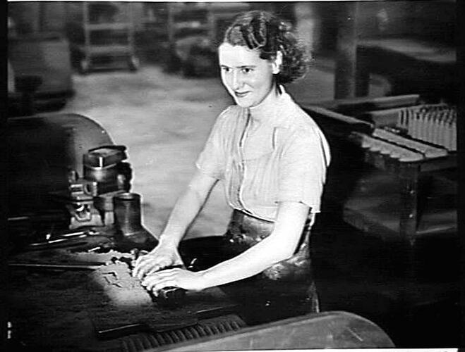 In April 1935, a 15 year old Anne Heffer joined the Sunshine Harvester Works' Core Shop where many young women were employed at the time. Anne remained with Sunshine Harvester Works until 1957 when she was retrenched following Massey-Ferguson's absorption of the firm. During her 22 year association with the company, Anne was declined work for only a brief period of time. She was laid off in December 1938 due to a lack of work in the factory, presumably due to the Great Depression. However, she returned the following year. Similarly, Anne's employment was temporarily terminated as a result of industrial action within the factory in 1946.