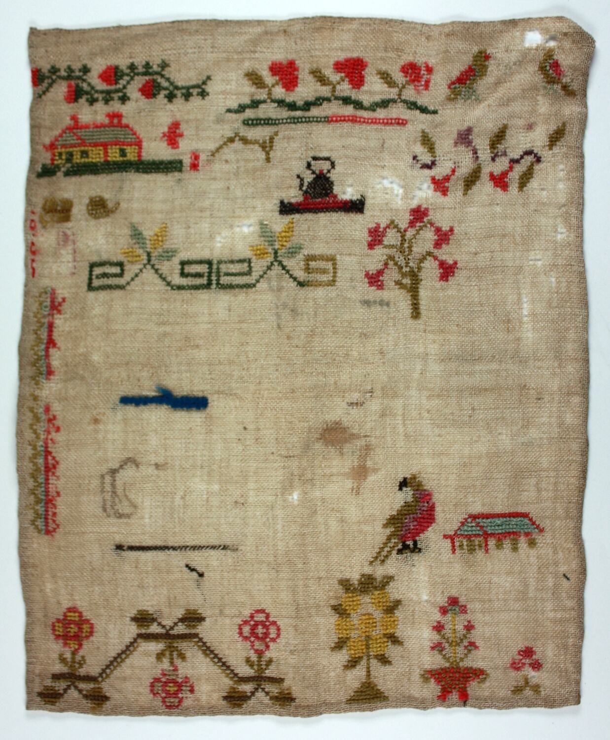Museums Victoria holds five samplers made in a home in Latrobe Street by sisters Alice and Eliza Winter. They were two of nine children born to Richard and Eliza Winter. Richard William Winter married Eliza Cock in the Parish of St Luke, Middlesex, England, on 30 June 1833. A notice in the Sydney Monitor confirms a Mr and Mrs Winter arrived on the Industry on 18 May 1834; no children are mentioned. The passenger list for the vessel confirms that they were unassisted and travelled in steerage. Their first child Richard was born in Sydney the year after their arrival, in 1835. Eliza Jane Winter was christened on 12 June 1842 and died in 1853. Alice Winter was christened in 1857 and probably died in 1927.