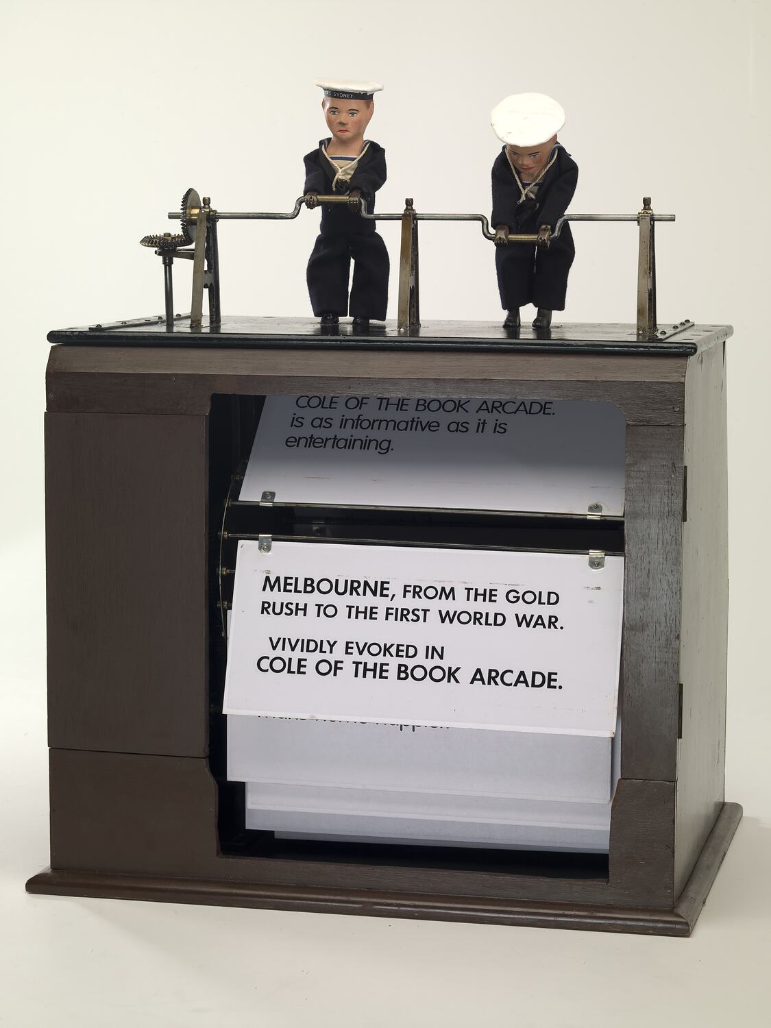 These Little Men once cranked over their signs in the entrance to Cole's Book Arcade, one of the wonders of 'Marvellous Melbourne' in the late 19th century.