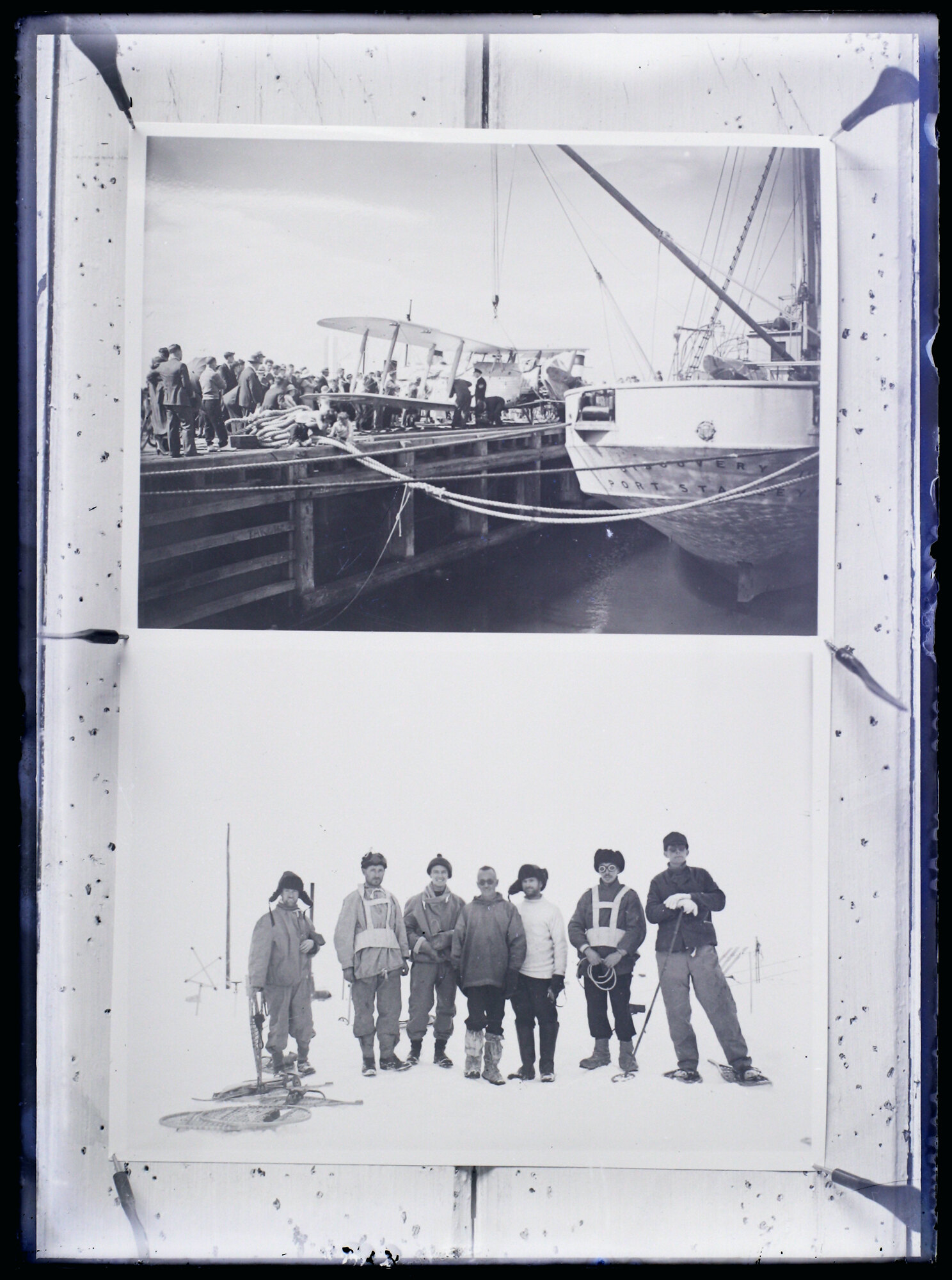 The Eric Douglas Antarctic Collection at Museums Victoria consists of objects and images relating to Antarctic exploration. Within the collection there are 328 images in various formats including artworks, photographs, glass negatives and lantern slides. There are 201 images relating to the British Australian New Zealand Antarctic Research Expedition (known also as the BANZARE and the BANZ Antarctic Research Expedition). BANZARE comprised two summer voyages to the Antarctic in 1929- 1930 and 1930-1931 on the 'Discovery' - sailing steamship and known as the 'RRS Discovery' and the 'SY Discovery' - under the leadership of Sir Douglas Mawson. The BANZARE component of images consists of 165 lantern slides, 17 glass plate negatives, 7 coloured advertisement lantern slides and 12 photographs. Most of the images were the photography of RAAF pilot Eric Douglas (Pilot Officer on Voyage 1 and Flying Officer on Voyage 2) and Captain Frank Hurley the official photographer and cinematographer for BANZARE. Also included in the collection are 5 Frank Hurley images from the Australasian Antarctic Expedition (AAE) of 1911-1914 on the 'Aurora' under the leadership of Dr Douglas Mawson. Within this collection too is a Frank Hurley photograph called 'The Crystal Canoe' taken in South Georgia in 1916-1917 when he was on the Endurance Expedition 1914-1917, under the leadership of Sir Ernest Shackleton. The last component consists of 121 images relating to the Ellsworth Relief Expedition of 1935-1936. The breakdown of the 121 images is of 100 lantern slides, 18 glass plate negatives, 1 photograph and 2 paintings by two different members of the crew of the Discovery II. Photography of these images was by Eric Douglas and the official photographer for the steamship RRS Discovery II, Mr Alfred Saunders and by Press photographers in Melbourne. The collection at Museums Victoria also includes artefacts, and among those items is Eric Douglas' Zeiss Ikon Icarette camera used to take images attributed to him in this collection.