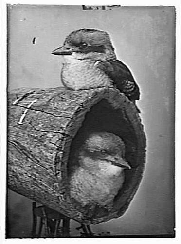 Jackasses have been observed gathering mussels (Unio) at the edge of a creek, and whacking them against a log or limb endeavouring to open them; they will also dive for small cray-fish. Mr. C. H. McLennan tells me he has observed these birds perching on a limb just over the river (Wimmera) and diving into shallow water after yabbies (small crayfish), sometimes going right under.