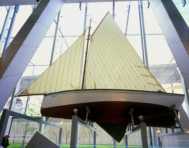 While it is not intended that Patsy will ever sail again, she does have to be structurally sound to withstand permanent display in the lower foyer of Melbourne Museum. Restoration of Patsy meant that much of the evidence of her varied incarnations during her working life was removed. However, these were well documented so that, although she has been returned to her original appearance, her long history of physical change is not lost. This documentation takes the form of drawings, photographs, notes and samples. Today we see Patsy in the original state for which she was first intended - she represents a traditional 'Couta Boat in both construction and materials.