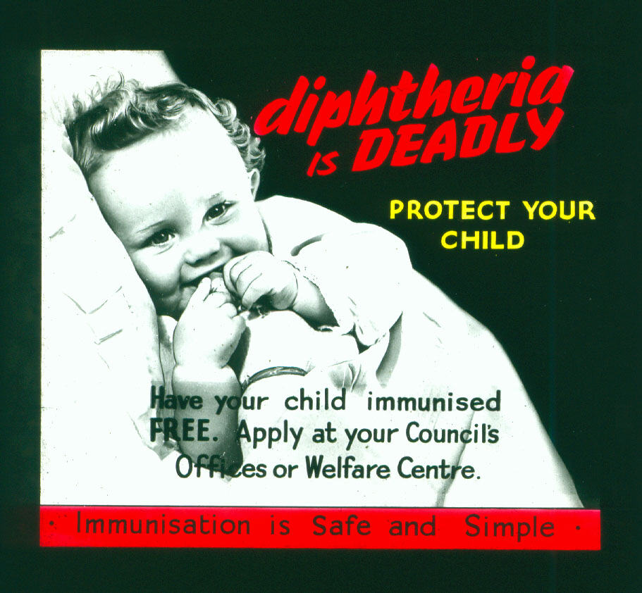 In 1918 the Medical Journal of Australia recommended swabbing to identify bacilli, isolating those infected and waiting for the disease to die out. But the editor noted that ' it would be utopian to expect the State Governments to sanction the expenditure necessary to control the faeces of the whole community. Much, however, can be accomplished by a methodical search for carriers in the environment of every notified case.' (The prevention of diphtheria', Med J. Aust., 1918, i: pp. 90-1, cited in Hooker & Bashford). Vaccines were available but there was concern they would not be accepted by enough people: public mistrust, the fact that diphtheria impacted children rather than adults and the lack machinery for large-scale implementation were also barriers.