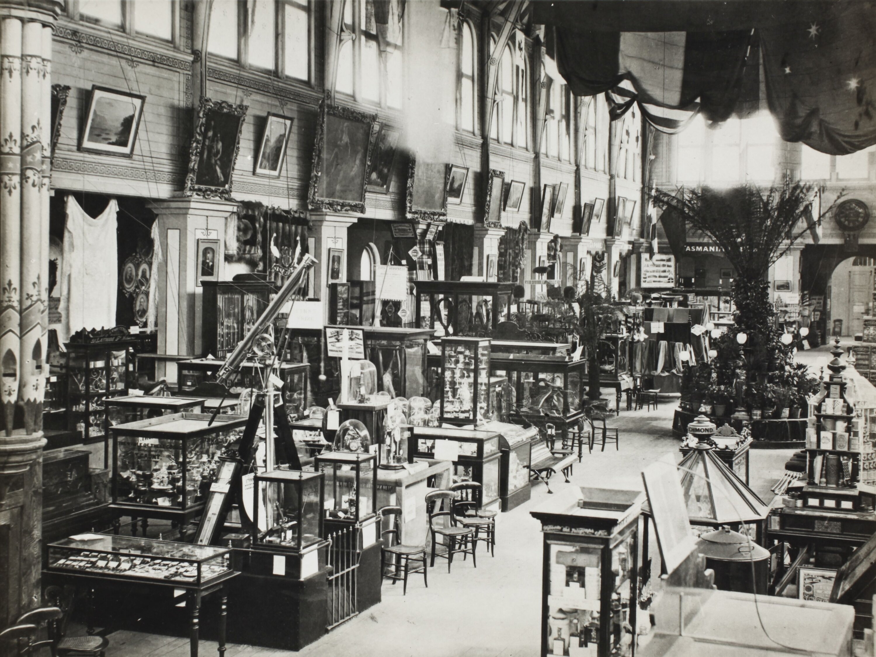 The collections were initially put on display in the former Intercolonial Exhibition Hall behind the Public Library, while the adjoining Rotunda was fitted out as a lecture hall and temporary laboratories were established in the old Police sheds at the rear of the building. Aside from their active teaching program, Newbery and Ulrich set about amassing a sizable collection numbering over 10,000 'specimens' within two years. Newbery organised the material following the same principals as the Museum of Irish Industry in Dublin (founded in 1854) and the Industrial Museum in Edinburgh (established in 1866). Displays were grouped into four main categories:
