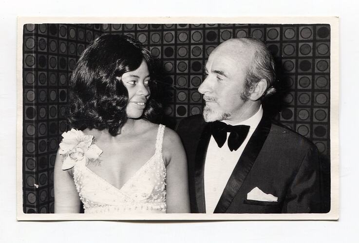 Sylvia and Lindsay were married on the 29 September 1969 at St Matthews Church in Bayswater, London. Then Sylvia had to apply for a visa to come to Australia as Lindsay's wife, and the couple booked tickets on the Sitmar Line ship "Fairsky", departing Southampton on 20 April 1970. The ship docked in Cape Town in the middle of the night, but the South African authorities boarded the ship and the couple was not permitted to go ashore now that they were married. Their friends Trevor, an opera singer, and his partner David came down to the docks with flowers for the couple and were disappointed not to see them. Sylvia apparently sang greetings to them from the ship, using her lovely opera voice. There is a photograph of friends on board the ship sharing a drink with them.