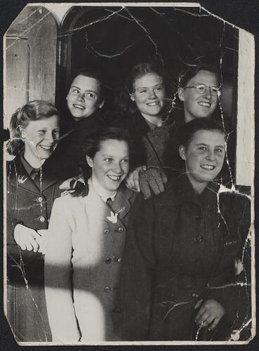 Sheila was six years old in 1940 when her mother, having not been able to find others who would take her, decided that 'the only thing left is to put her in a children's home' (from letter, 25 September 1940, Peggy Bannister to Violet Barker). In September 1941, after having been advised that her daughter was too old for adoption, Peggy wrote to the National Children's Home and Orphanage (NCH), 85 Highbury Park, London, enquiring about placing Sheila in one of their Homes. (from letter, 17 September 1941, Peggy Bannister to Secretary, NCH). An application was made to them in October 1941 and on 23 October 1941 Sheila moved to live at Bramhope, a branch of the NCH, near Leeds, in Yorkshire. Her father was paying 10 shillings a week in family support from his RAF pay and this was redirected to the NCH. At 84 years Sheila has no memories of her childhood before she went to live at Bramhope Home (from interview 1 Feb 2019, Sheila Philpott with Dr Moya McFadzean, Senior Curator, Migration & Cultural Diversity, Museums Victoria). About two years later, Peggy married Leonard (?) Sarjantson and they were living at 10 Parker Street, Newark-on-Trent, Nottinghamshire. She then sought to have Sheila return from the Home to live with she and her husband as 'her circumstances had changed considerably for the better' (from letter, 27 October 1943, Margaret Sarjantson to NCH). Sheila moved back in with her mother in December 1943. But after only three months her mother asked if Sheila could move back to Bramhope, as her daughter's life had been 'made a perfect misery' by her step-father and she couldn't 'prevent this very unfair treatment' (from letter, 2 March 1944, Margaret Sarjantson to NCH). So Sheila returned to Bramhope in April 1944. Sheila's mother applied to be separated from her husband at that time. Sheila then remained living at Bramhope in Leeds until she was 15. Internal NCH reports noted that her mother ceased being in touch and could not be traced, and that Sheila had no visits from friends or relatives and no outings for holidays. In 1948 Sheila had an operation for appendicitis and spent time in Leeds Infirmary. In 1949 she had left school and was working as a domestic in the Bramhope home.