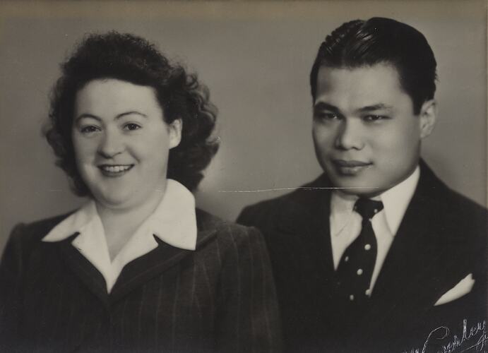 The Museum holds a collection of material relating to the migration and settlement experiences of seamen from the Philippines during and after the World War II era in Australia; and the experiences of the local Anglo-Australian women they married. The central story of the collection is that of Aileen McColl and Agapito Castillo who married in Melbourne in 1945. Agapito worked for the British Phosphate Company and like other men from the Philippines was caught in Melbourne during the outbreak of World War II.