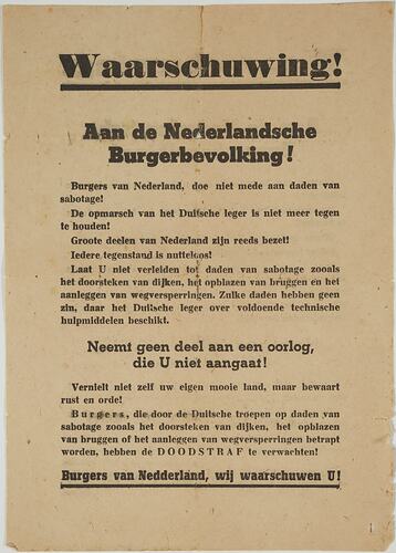 'The documents our grandmother Ann collected, many of which are now in the Museums Victoria collection, illustrate the occupation of the Netherlands and the family's subsequent immigration to Australia. These documents were well hidden, because if found, she would have been charged with holding and inciting underground propaganda. Our grandmother said that the family had the choice of emigrating to Canada, South Africa and Australia. She told us she reasoned Canada was too cold; she didn't support apartheid, so she chose Australia.