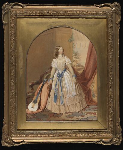Within a few weeks of Alexander's death, the Wallen's eldest daughter Eliza Bushe also died of typhoid fever in March 1854. She was just 17, and her last words 'My feet are upon the rock and the rock is Christ' are recorded in the Bible, as are the passages read to her 'when very ill'. A watercolour and gouache portrait of Eliza Wallen (HT 54014), and a mourning box containing a lock of Eliza's hair (HT 52124) are also held in the Museum's collection, along with the family Bible.