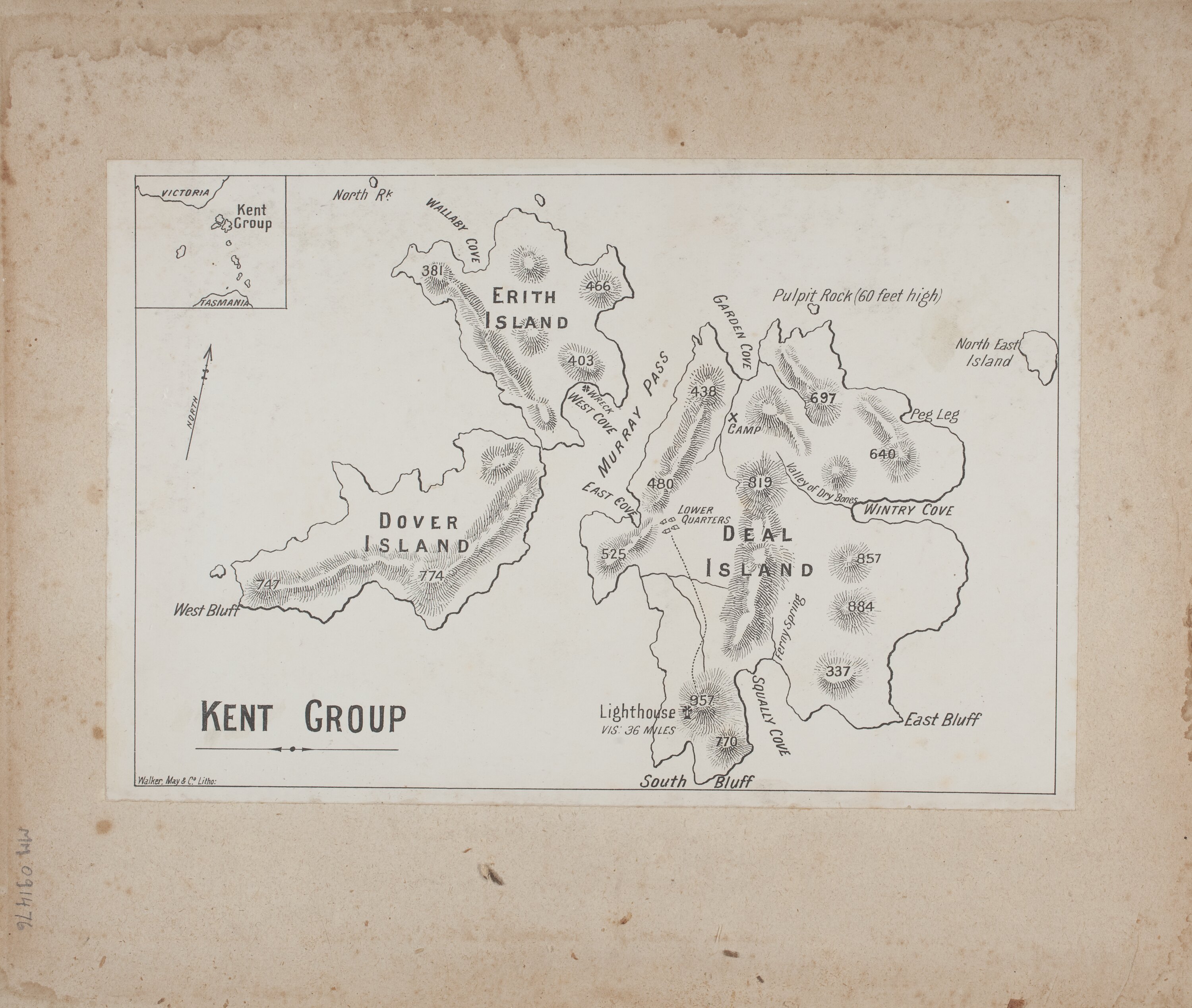 Sickness is almost unknown in the group. A few graves dot the islands, but, strange to say, they are mostly those of visitors. There is one sacred spot near the lighthouse - evidently the grave of a child. It is overgrown wit sweet peas all in bloom. Fierce storms sometimes pass across the straits, and focus about the high land of Kent Group. The lighthouse, although itself only 45ft. high, stands 1,000ft. above the sea, and has been struck more than once by lightning. Some years ago the granite tower was struck, and portion of the inside fittings torn away.
