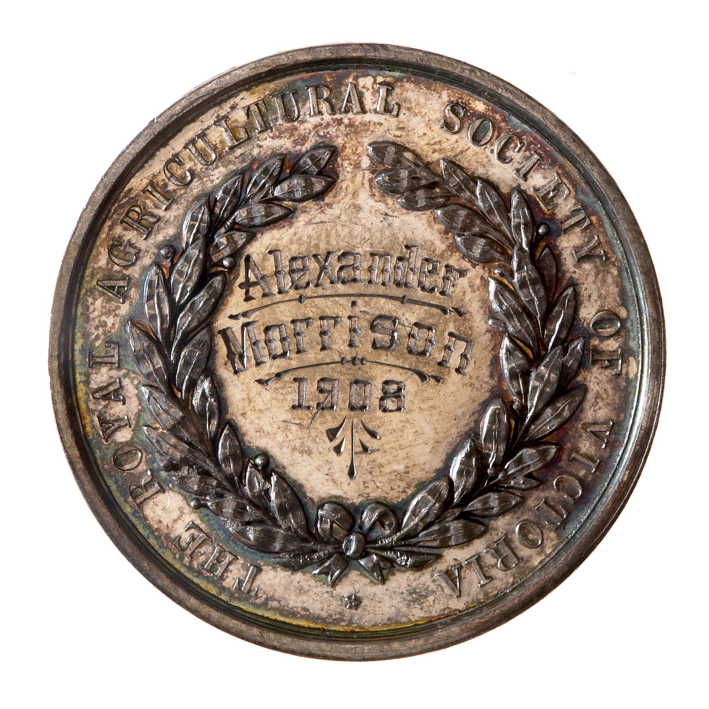 Alexander Morrison won a Royal Agricultural Society of Victoria silver first prize medal in 1908 for a 'set of wagonette harness' (NU 20487).