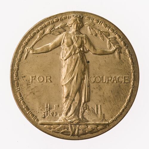 Gilbert Bayes was a sculptor and medallist who first exhibited at the Royal Academy at the age of 17. He did the obverse of the Scott Antarctic medal of the Royal Geographic Society in 1904. His work was exhibited at the 1900 Paris International Exhibition and received an honourable mention. He designed the King's Police Medal of Edward VII and many of the Great Seals of the UK for George V.