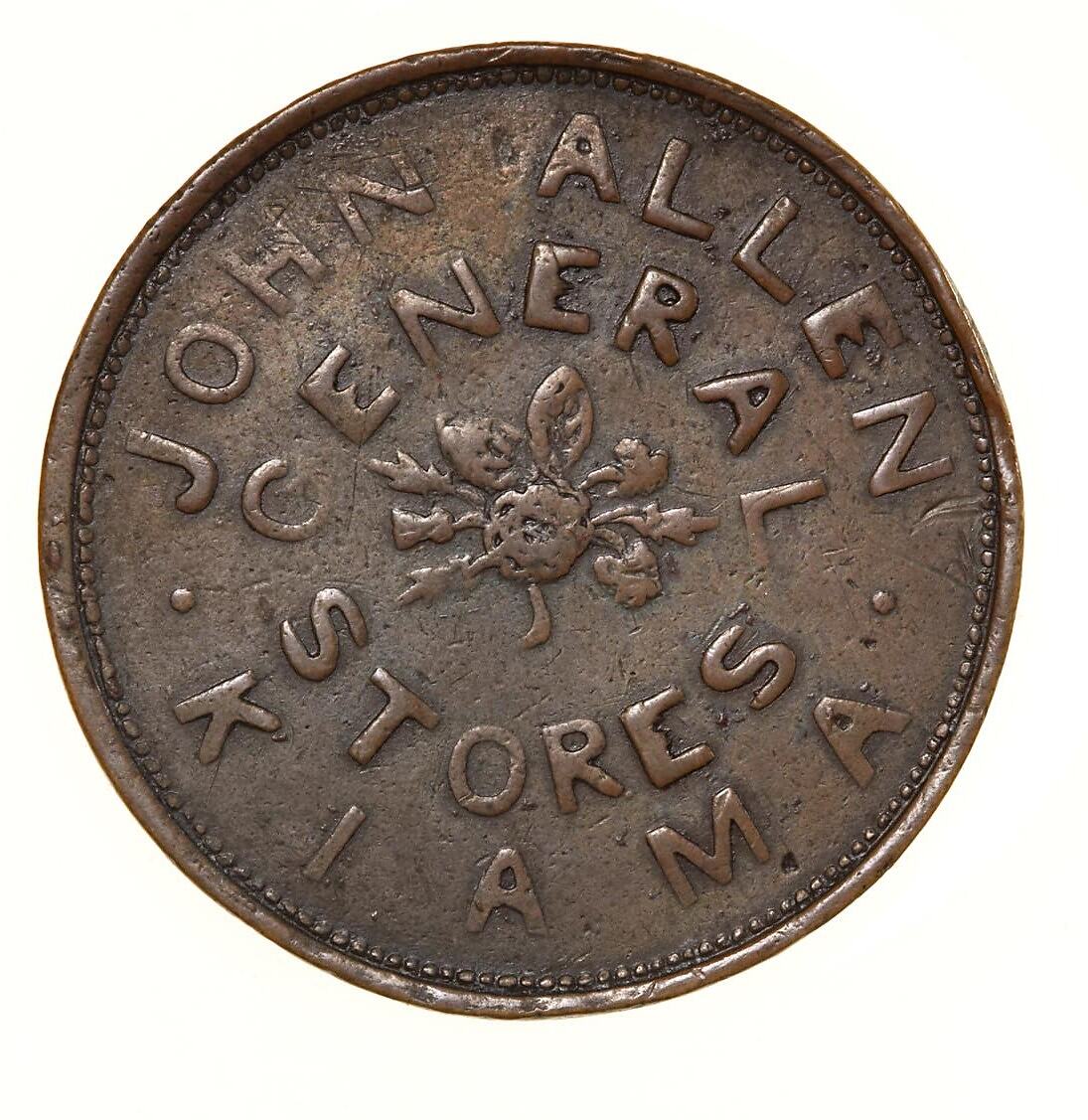 John Allen is said to have rejected tokens made for him by the Sydney Medalist J.C. Thornthwaite in 1855. According to Andrews, tokens made by Thornthwaite were rejected by both John and his brother William of nearby Jamberoo because of their poor workmanship. Andrews relates that after John had rejected his tokens they were disposed of at a penny each by Thornthwaite to the toll gatekeeper at Annandale [Sydney], who passed them on in change to hapless wayfarers.