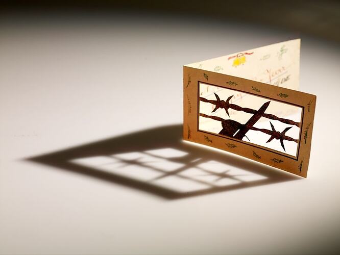On 4 September, 1939 Karl Muffler, along with dozens of other German residents (including his father-in-law), was placed into police custody as an enemy alien. The reasons for Muffler's capture were almost certainly related to his association with DAF, which was seen as a group with definite Nazi sympathies. Karl was transferred to Tatura internment camp on 22 January 1941 (according to his file); it is unclear where he was located in those months inbetween (home detention, a work gang outside Melbourne are possibilities at this time). While at Tatura he undertook woodcarving and drafting classes and worked as a cake decorator, which apparently earned him a living, substantiated by a number of internment currency coins in the collection. Muffler's professional accomplishments were ultimately recognised with a certificate stating 'special acknowledgement of achievement in confectionary work'. He was transferred to the Victorian Civilian Alien Corps (VCAC or CAV) on 20 June 1944 and was assigned to a Forestry Commission camp in Broadford on 1944. Karl was finally released in 1945. It seems that he maintained a connection to the events of his internment, visiting the German War Memorial in Tatura every year or two for much of the remainder of his life.