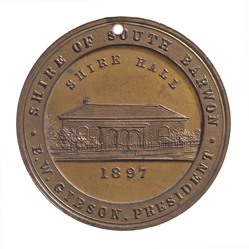 The Shire of South Barwon issued a medal to commemorate the jubilee of Queen Victoria in 1897 (NU 20435). It named E.W. Gibson as Shire President.
