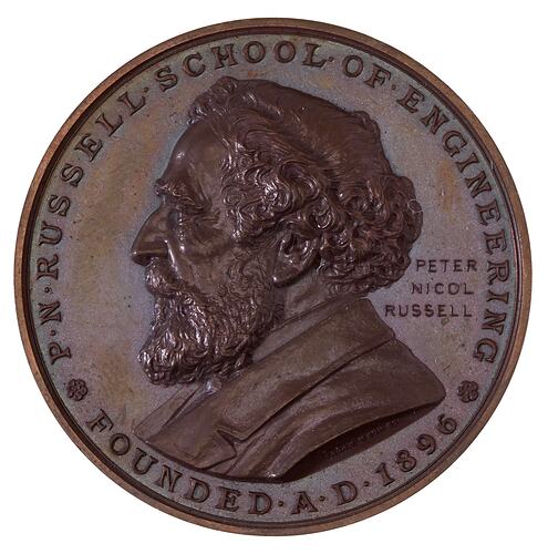 The Peter Nicol Russell Medal was established in 1899 by the University of Sydney in recognition of Sir Peter's substantial donations to support the development of engineering in Australia. He gave the first of two donations each of 50,000 pounds sterling to the University in 1895 for the Peter Nicol Russell School of Engineering and for lectureships. The medal is awarded for postgraduate work in the University.