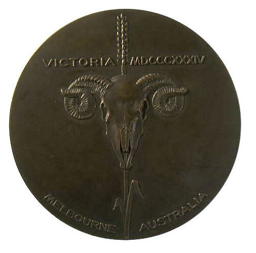 Hoff studied at the Nottingham School of Art before migrating to Australia in 1923. He taught drawing and sculpture at Sydney Technical College. In the year of his arrival he produced his first Australian medal: for the Society of Artists. The medal was well in advance of Australian medal work at this time and introduced new ideas to the Australian scene. Hoff only produced seven medals in Australia, preferring to focus on his sculptural work. He is best remembered for his controversial medal to commemorate Melbourne's centenary, symbolising the wool industry with the skull of a sheep. Victorian Premier Stanley Argyle was furious, and even suggested that the medal was a joke being played on Victoria by New South Wales. Others commended its skill and form.