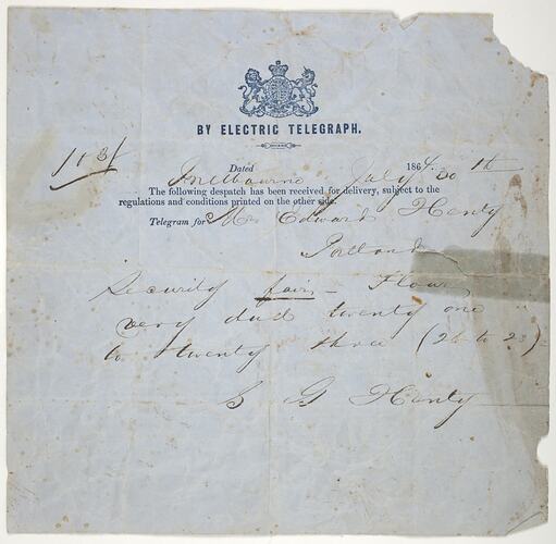 Stephen Henty was an enterprising explorer, merchant, trader, shipowner, whaler and magistrate, and active in civic affairs. His wife Jane played a leading role also, although she had borne ten children before she was 40. From 1856 to 1870 Stephen was a member of the Legislative Assembly. During this time the family lived in Findon, a mansion they had built in Melbourne. Henty eventually became ill and returned to the land, where he died in 1872, at the age of 61.