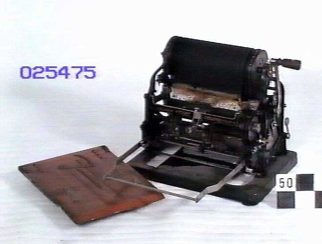 For several years the Mimeograph and Cyclostyle duplicators coexisted, each performing the same function using their slightly different methods. With each, finished stencils were placed in a wooden frame so that ink could be pressed through them with a roller. It was messy but effective. At this earliest stage, however, neither device effectively exploited the Typewriter, another new invention which seemed perfectly suited to be teamed with duplicators. The Typewriter had been around for about ten years when the Mimeograph and Cyclostyle appeared. Duplicator stencils, however, were backed with thin tissue which was often torn to pieces under the pounding of typewriters. A.B. Dick pounced on the solution to the problem when he bought rights to an 1888 patent for a new stencil backed by a sturdy porous tissue. The typewriter would penetrate the wax, but not the tissue. Suddenly, the potential for producing thousands of copies from a typewritten original was created.
