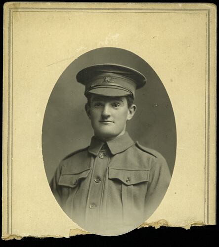 Alfred was initially rejected by the AIF: to enlist in 1914 a man had to be 19-38 years old, at least 36" chest size and at least 5'6" tall, and without physical issues such as unfilled teeth, flat feet or corns. The standards were so high that the '1914 men' still stood out in 1918. Selection requirements became less rigorous after the Gallipoli landing - for example, the height requirements were lowered to 5'2". Alfred's second attempt to enlist, in July 1915, was successful. He was one of many: enlistments in Victoria increased from 1,735 in May to 21,698 in July. (Gammage, The Broken Years, pp.9 & 14)
