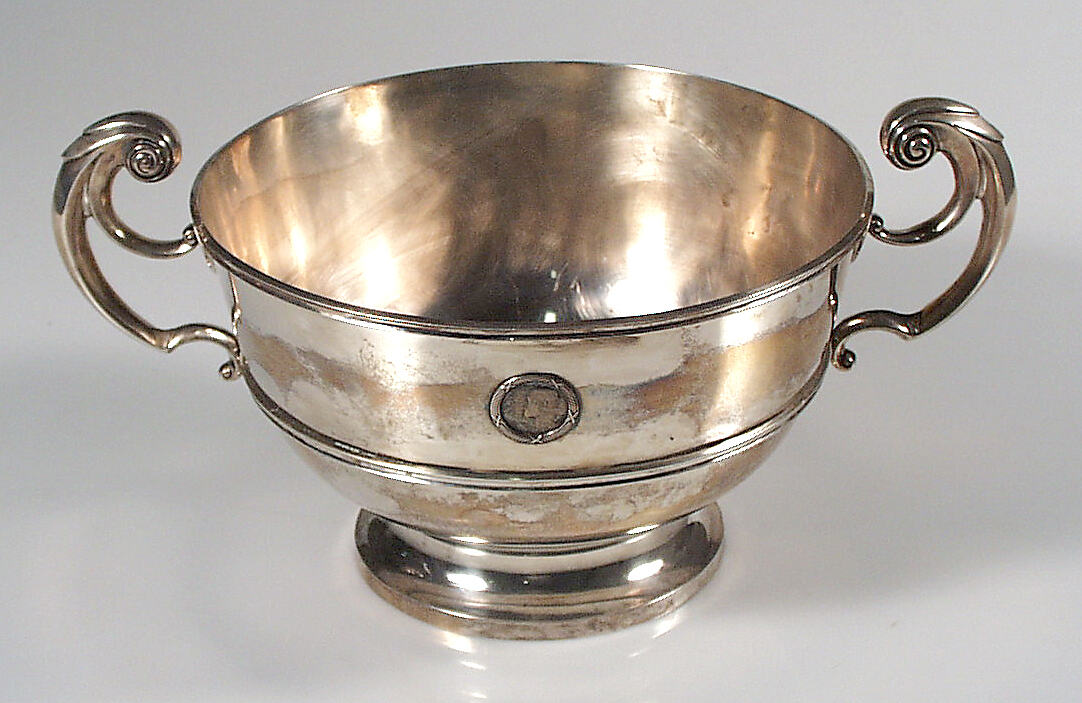 The Silver Rose (or Punch) bowl and cups were presented by the Duke and Duchess of Cornwall and York to Commodore Alfred L. Winsloe of the Royal Navy in 1901 to commemorate their visit to the colonies. The Duke and Duchess spent eleven weeks touring Australia and New Zealand aboard the HMS Ophir. The first stop on the tour was Melbourne, where the Duke presided over the opening of the First Federal Parliament of Australia, on 9 May 1901 at the Royal Exhibition Building .