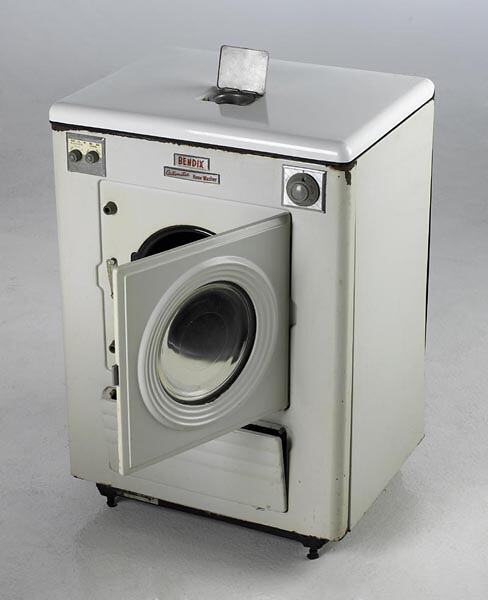 The potential to use less water was a key factor of the 1950s Bendix 'Automatic Home Washer', as suggested by its 'water rationer' dial. Designed in the United Kingdom, this front-loading machine was an early example of concern for water and energy use, and the push for more environmentally efficient appliances.