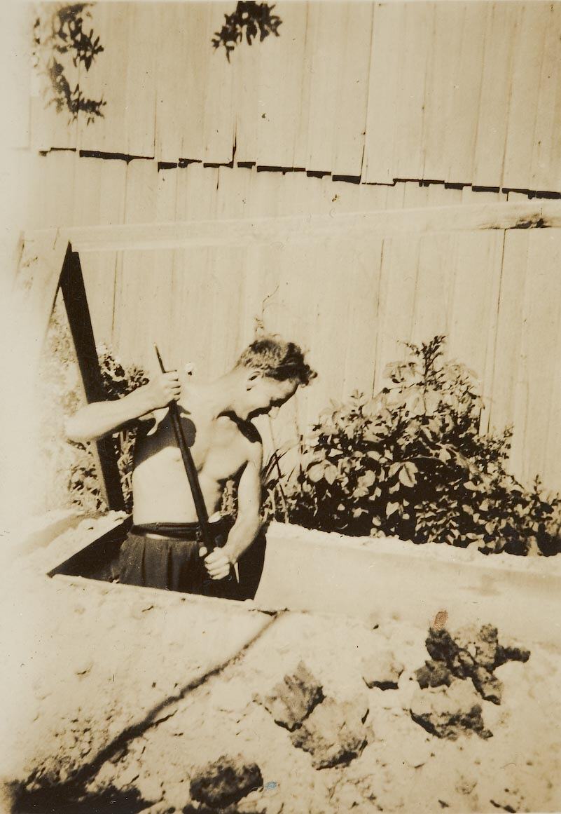 Families faced particular challenges during the war. While fathers were away fighting, many mothers worked long hours in offices and factories and children helped grow vegetables in backyard 'victory gardens'. After Japan entered the war in 1942 and invasion threatened, the fear of bombing hung in the air; trenches were dug across school playgrounds, air-raid shelters were dug in suburban backyards, some city children were evacuated to rural areas and air-raid drills were held.