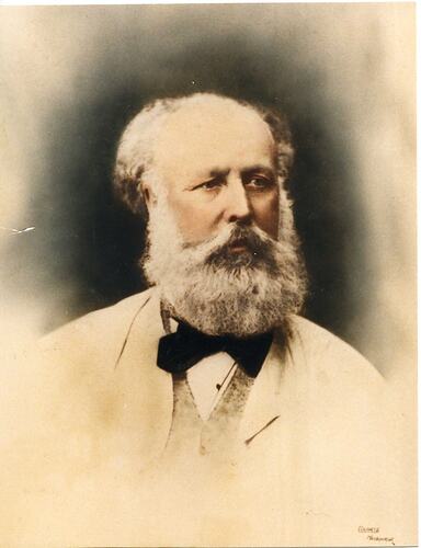 Dugald McPherson (sometimes Macpherson, 1820-1901) was a pioneer squatter who emigrated to Victoria in 1840 aged 20 with his brother Peter, bringing with him a trunk of Scottish regalia (ST 025294). Born in Argyllshire, Scotland, he was the son of Dugald Macpherson and Jane, daughter of Peter McKellar (the McKellars later had connections to the Western District). Dugald first settled at Ballan, north-west of Melbourne, and subsequently developed huge landholdings in north-western Victoria, New South Wales and Queensland. A stalwart of the Scottish immigrant community, he became chief of the Highland Society of Ballarat and an elder of the Presbyterian Church. With other wealthy pastoralists, he later helped form the Australian Club in William Street. He was a councillor in the Ballan Shire 1864-1873. Dugald married Mary O'Cock; his brother Peter married her sister (they moved to New South Wales, where their descendants still live). Dugald and Mary had seven sons and five daughters. Dugald's second son Arthur married Annie Fawkner, a daughter of John Fawkner. In 1861, William Wills, father of William John Wills of Burke & Wills fame, stayed briefly with Dugald during the agonising wait for his missing son. Dugald's great-great-granddaughter, Hope Macpherson, says that the family remembered Dugald as very interested in his Scottish heritage and was 'land-hungry'.