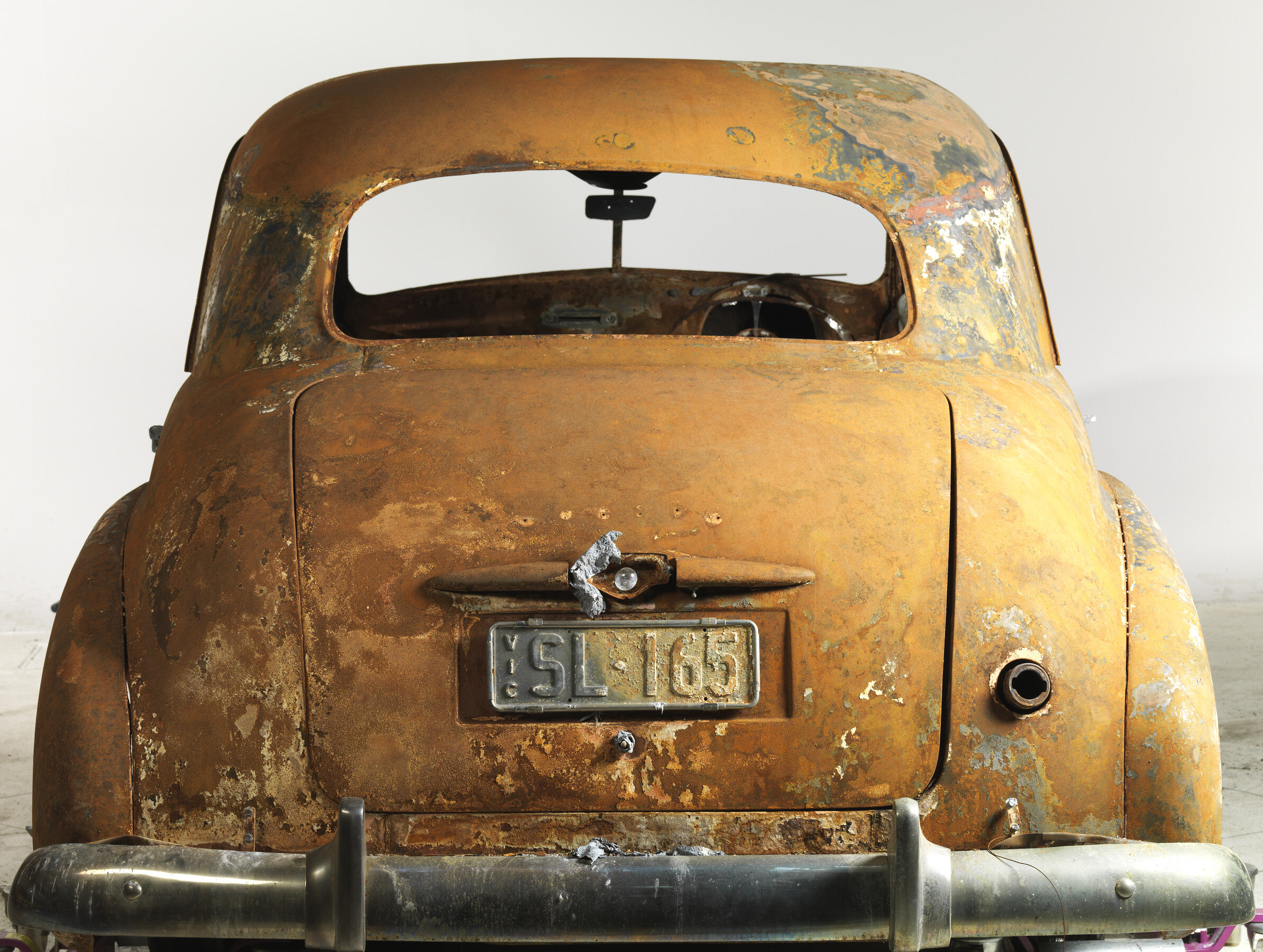- A burnt-out 1950 FX Holden 48-215, part of a collection of vintage motor cars destroyed in the Churchill fire