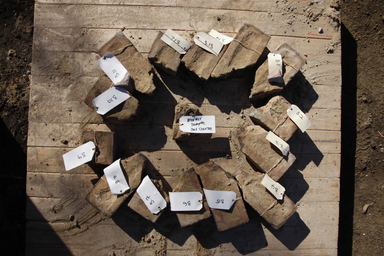 Some bricks have thumb marks. This has a number of possible meanings, but could indicate a counting system, where every 100 bricks are marked by a thumb print.