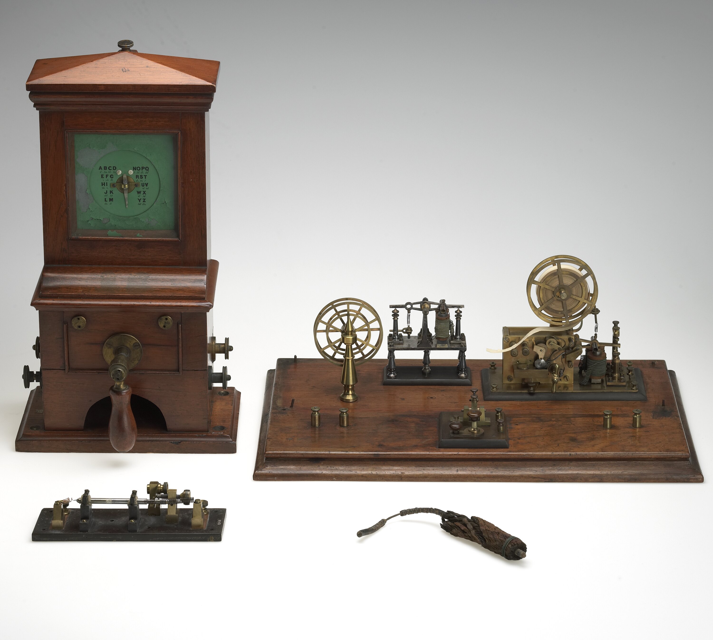 Apart from actual telegraph instruments, the collection includes objects such as samples of submarine telegraph cables, telegraph line insulators, government reports on telegraph operations, and examples of telegrams.