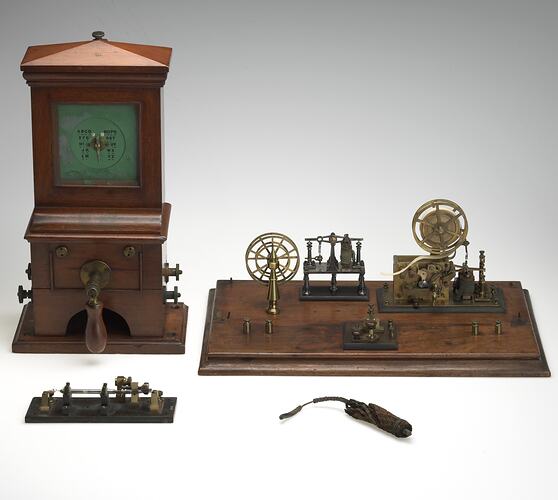 Other objects in the collection include several needle telegraphs. These instruments relied on successive deflections of a needle or needles to convey coded messages over the telegraph lines. They were not used in the Victorian Government's telegraph system.
