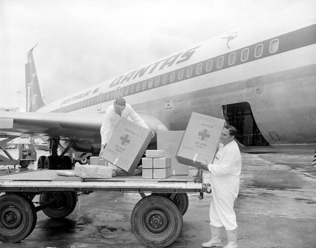 Developed from the Model 367-80 first flown in 1954, the first Boeing 707 flew at Seattle on 20 December 1957 and entered airline service the following year. The British-built De Havilland Comet had demonstrated the potential of the four-engine jet airliner in the early 1950s but structural failures slowed progress in Britain allowing American aircraft manufacturers such as Boeing to establish a dominant position in jet airliner development which has only recently been challenged by Airbus Industries in Europe. The 707 quickly became the most popular long haul international jet airliner introducing limited stop or non-stop intercontinental services with greater speed and comfort than the piston-engined machines they replaced. The Sydney-London flight time was cut from 63 hours in a Super-Constellation to just 33 hours in a Boeing 707.