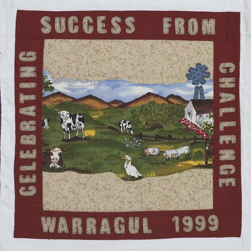 The Victorian Women on Farms Gathering Collection consists of over 450 items including symbolic 'icons', interviews, photographs, videos and a range of memorabilia. The objects collected from each Gathering symbolise the meaning of place and contemporary issues impacting that rural area. The Collection covers the first twenty years of the Victorian Women on Farms Gatherings, 1990-2009.