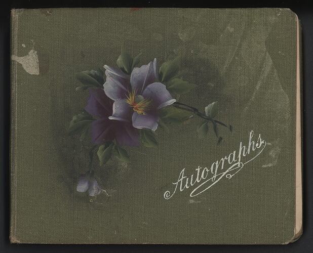 Many people signed the World War I autograph album HT 27666, which most likely belonged to Elizabeth Louise Shelly (nee Floyd), the wife of Edmund 'Ned' Shelly from Adelaide. She sailed from Adelaide to join her solider husband in England in September-October 1916. Those who signed the album included Ned, his brother William, fellow soldiers and shipboard passengers. (Separate historical accounts have been written for Ned and Elizabeth, and for William.)