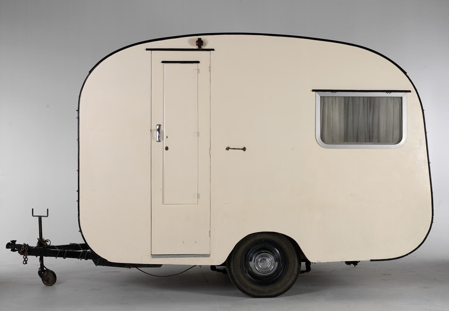 Initially the caravan had tail-lights and a central brake-light, but no blinkers. Later the blinkers and brake-lights were added by Richard, to meet regulations. These lights, a new coat of paint to the outside and new curtains inside were the only changes made to the original caravan. All the interior paintwork and furnishings, other than the curtains, are original.
