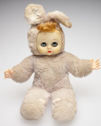 In 1963 Maria broke her arm and was hospitalized for three weeks at the Alfred Hospital in Melbourne. During her stay she was given a doll she called rabbit by a relative who came to visit. When Maria broke her arm they were sharing a house with two other families, and her father was driving taxis as a night job, trying to save more money so they could buy their own home. When she broke her arm she remembers having no cars or phones and her arm being wrapped up in many towels, she was bleeding profusely, and then being carried into the streets wrapped in blankets until a passing taxi was hailed which took them to the hospital.