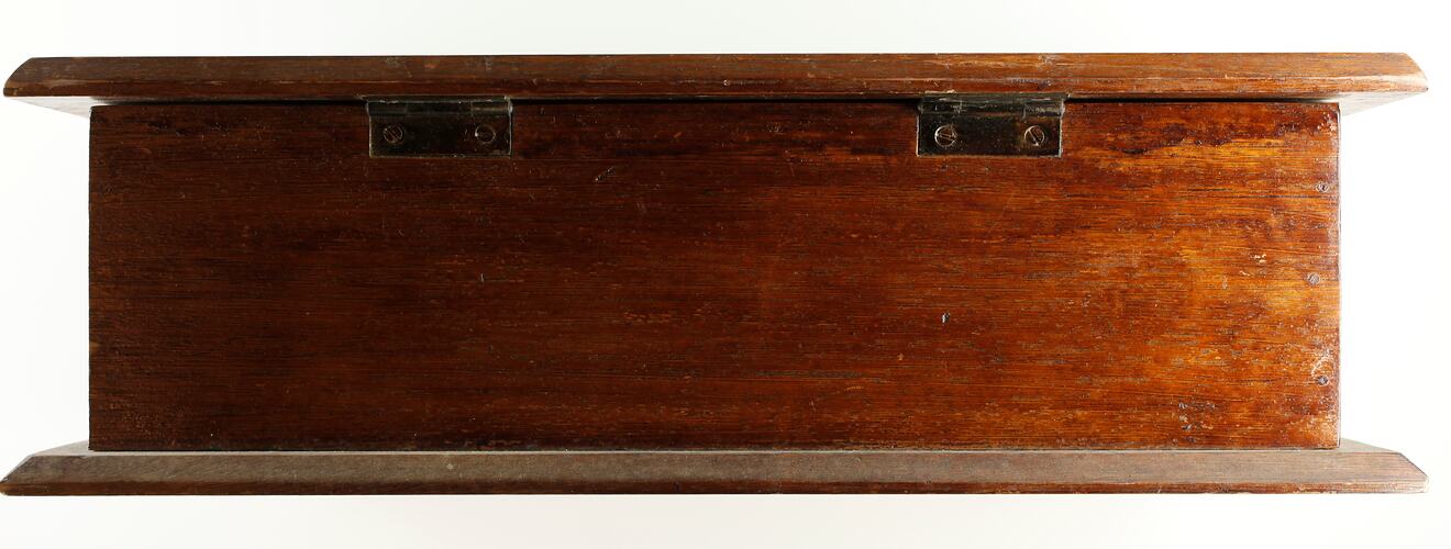 Made for Kath Davis by her boyfriend (who had given her her original glory box), around 1938. Kath Davis kept the box in her glory box, and kept all her sewing tools and materials in it. She has used it as a sewing box all her life.