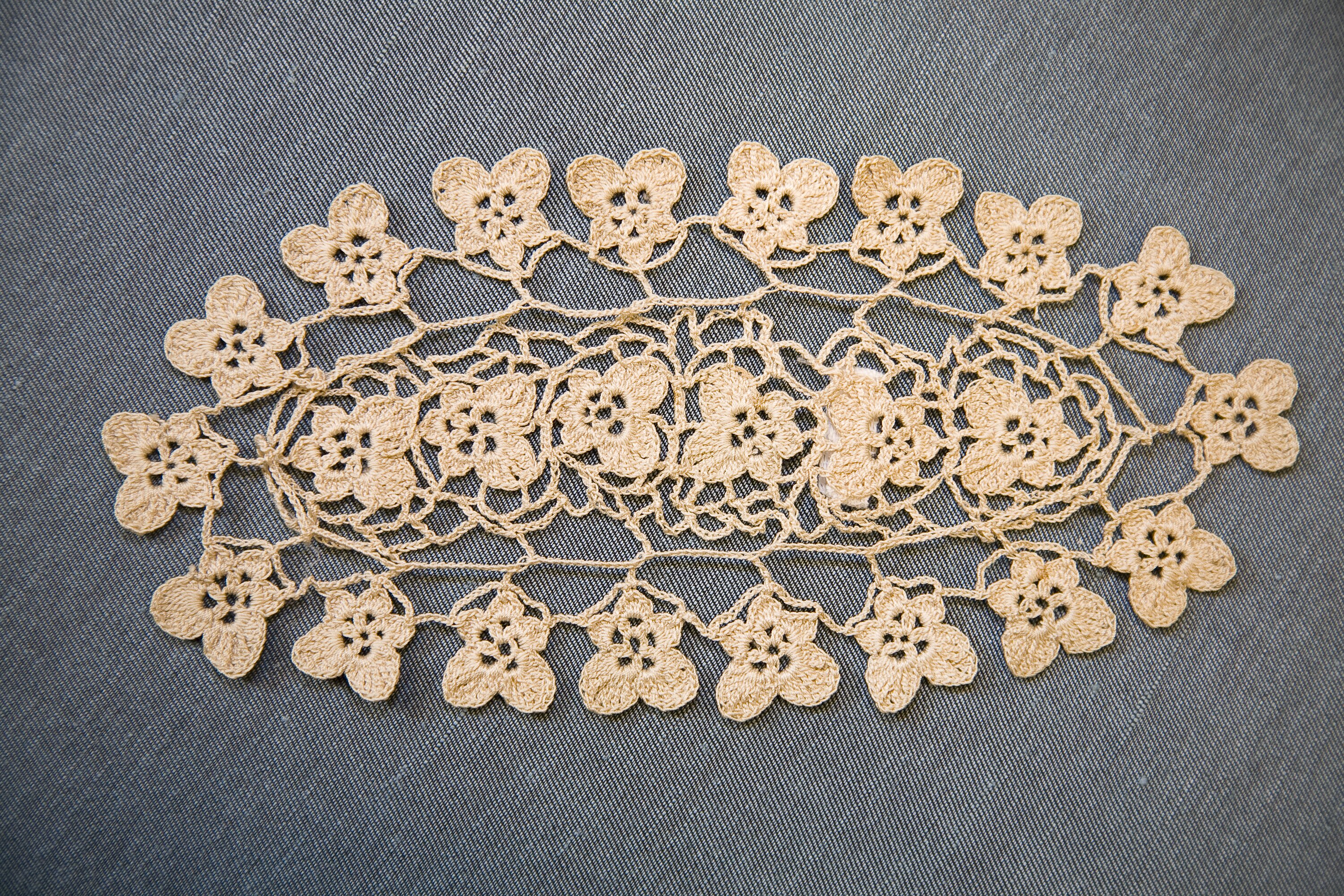 Fine crocheted worked piece, flower design.