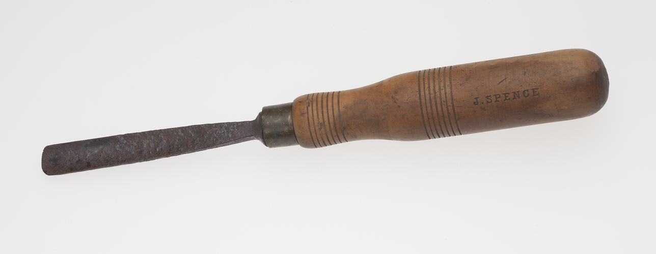 Chisel used by John Spence to make furniture for the Nicholls' home in Australia. John Spence migrated to Australia in 1923 with his nephew's family, William and Susannah Nicholls and their two children Margaret and John. In Australia the family first moved to Walwa in North Eastern Victoria, where Will was appointed as a teacher. They then moved to Pearcedale on the Mornington Peninsula, as Will was keen to try farming. The farming was unsuccessful, and both Will and Susannah returned to teaching.