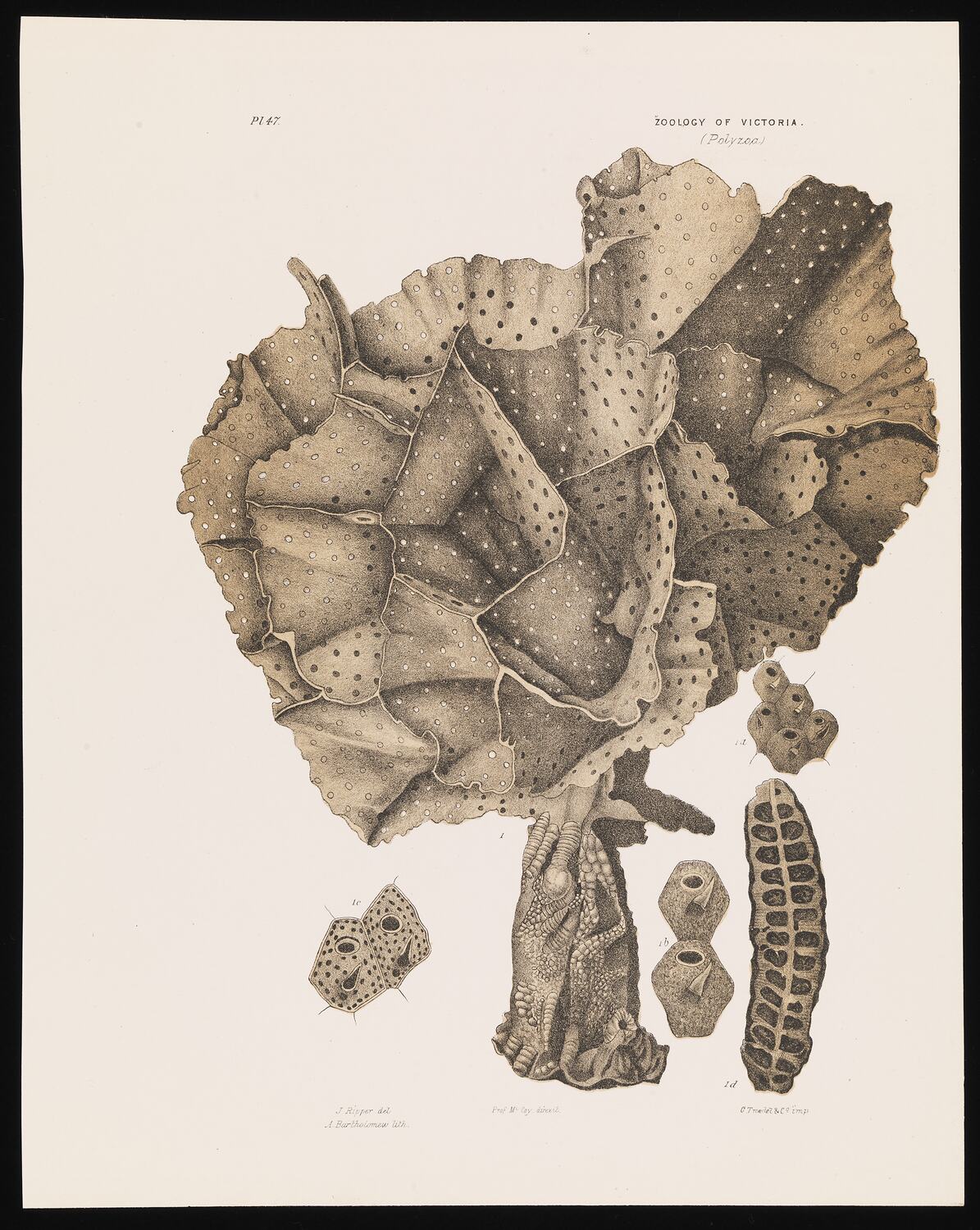 Pl.47 / Zoology of Victoria (Polyzoa) . J.Ripper del / A.Bartholomew lith. / Prof.McCoy direct. / C.Troedel & Co.imp
