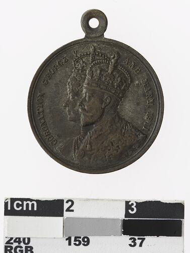 Obverse: In centre, busts of George V and Mary. Around , CORONATION GEORGE V AND MARY , 1911 / S & S. Reverse: In centre, SHIRE OF ARARAT /PRESIDENT , S. CALVERT SECRETARY ROBT D. SPEED
