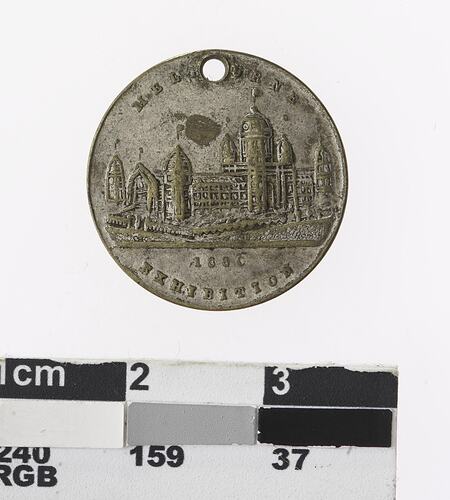 Obverse: In centre: Royal Exhibition Building. MELBOURNE EXHIBITION / 1880 Reverse: ADVANCE / AUSTRALIA