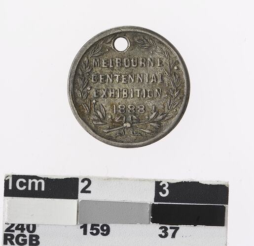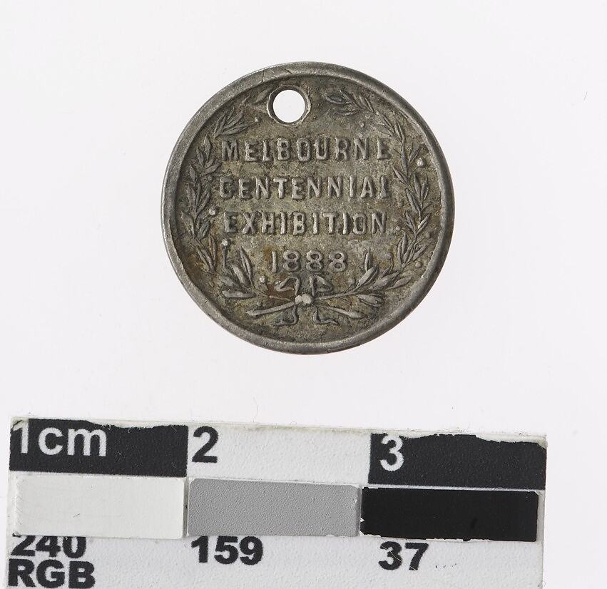 Obverse: MELBOURNE / CENTENNIAL / EXHIBITION / 1888 Reverse: Coat of arms