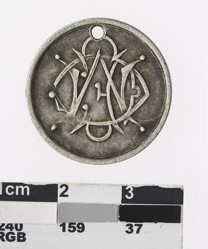 Obverse: In centre : Royal Exhibition Building . Around. MELBOURNE CENTENNIAL. Below: EXHIBITION/1888 Reverse: Intertwined letters MCE
