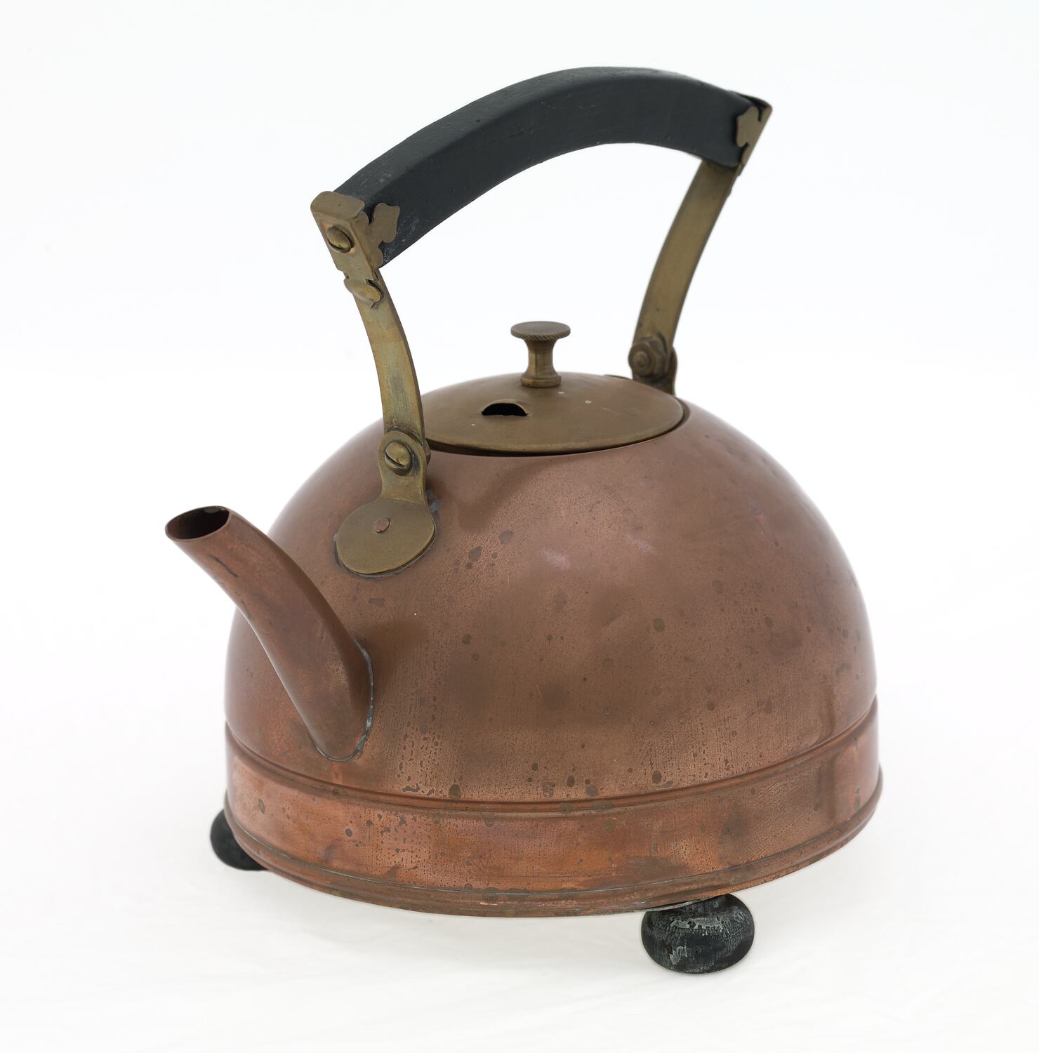 Dome-shaped, copper, non-ferrous electric kettle produced by Hecla Electrics Pty Ltd, Melbourne, Australia around 1925.