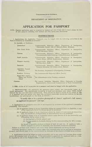 COMMONWEALTH OF AUSTRALIA./DEPARTMENT OF IMMIGRATION./APPLICATION FOR PASSPORT